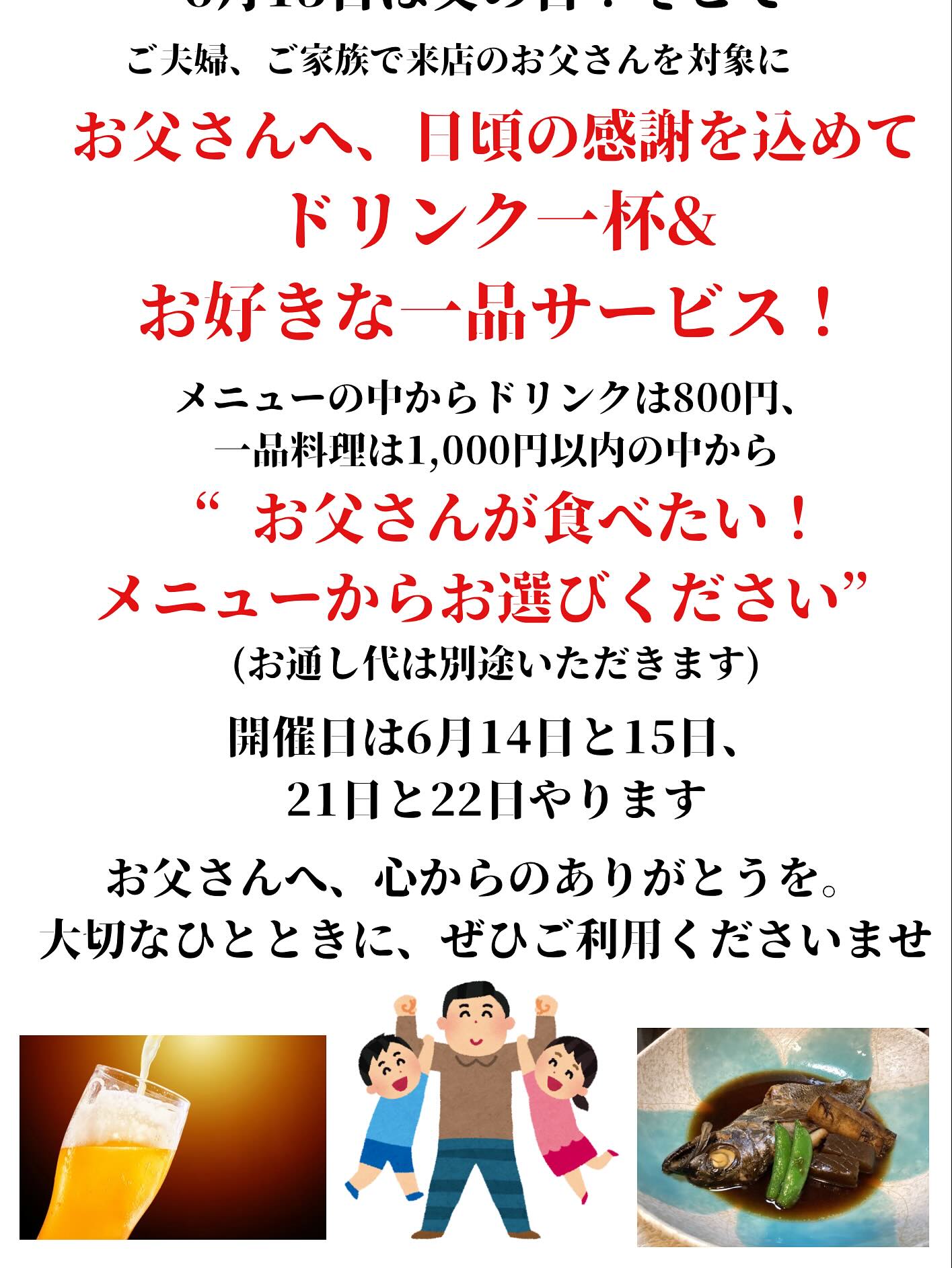 「お父さんへ、日頃の感謝を込めて。ドリンク一杯&...